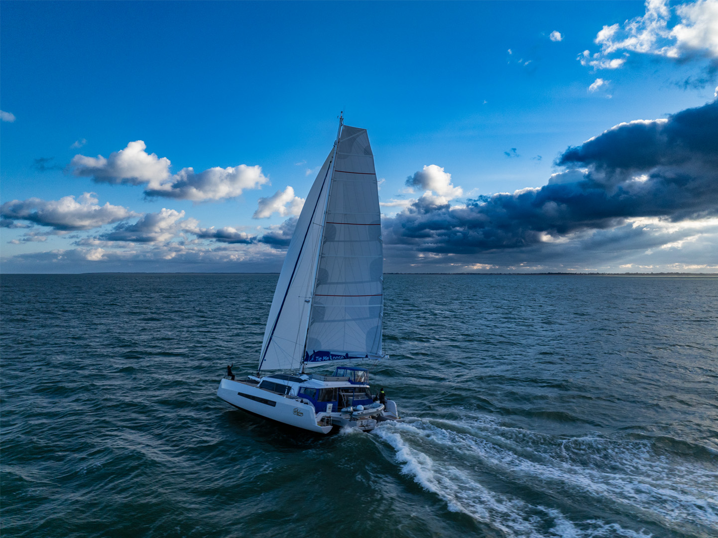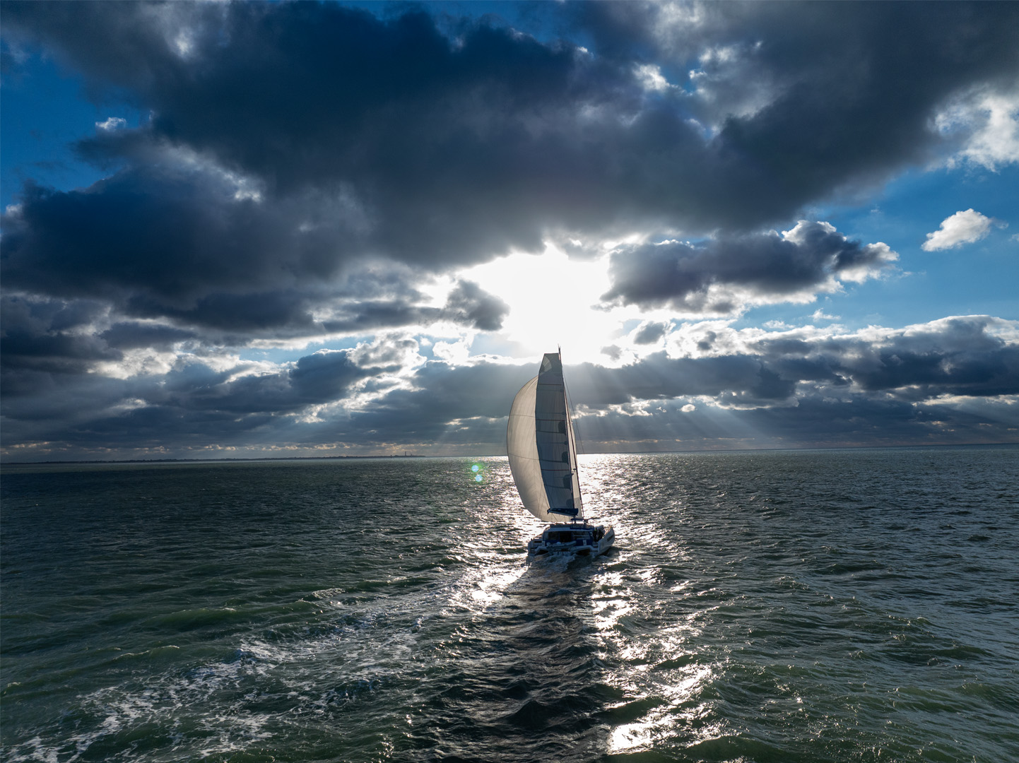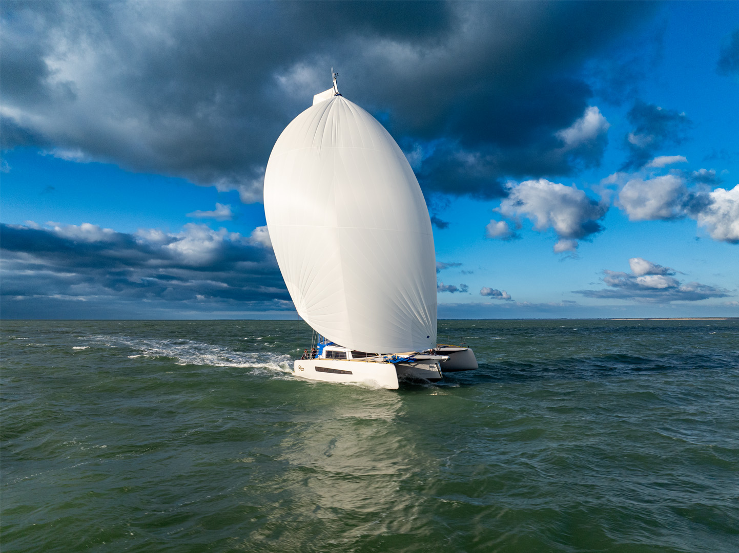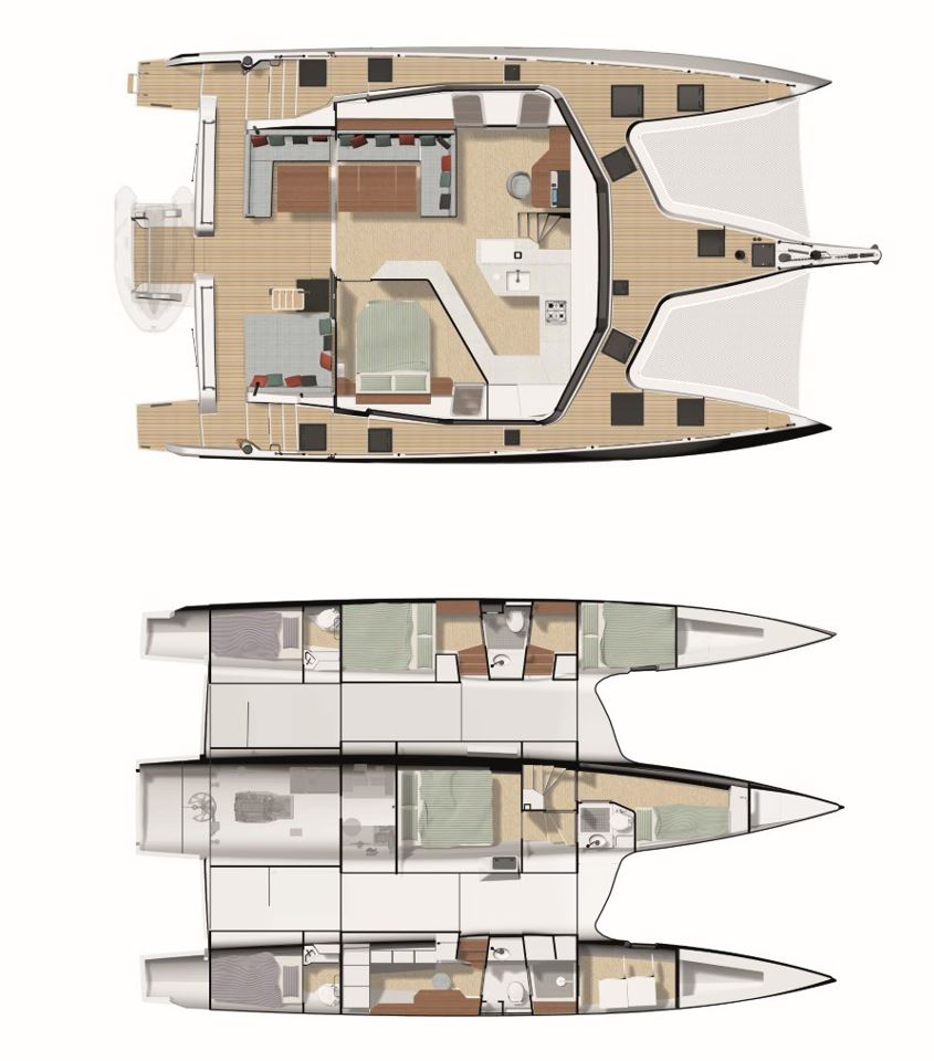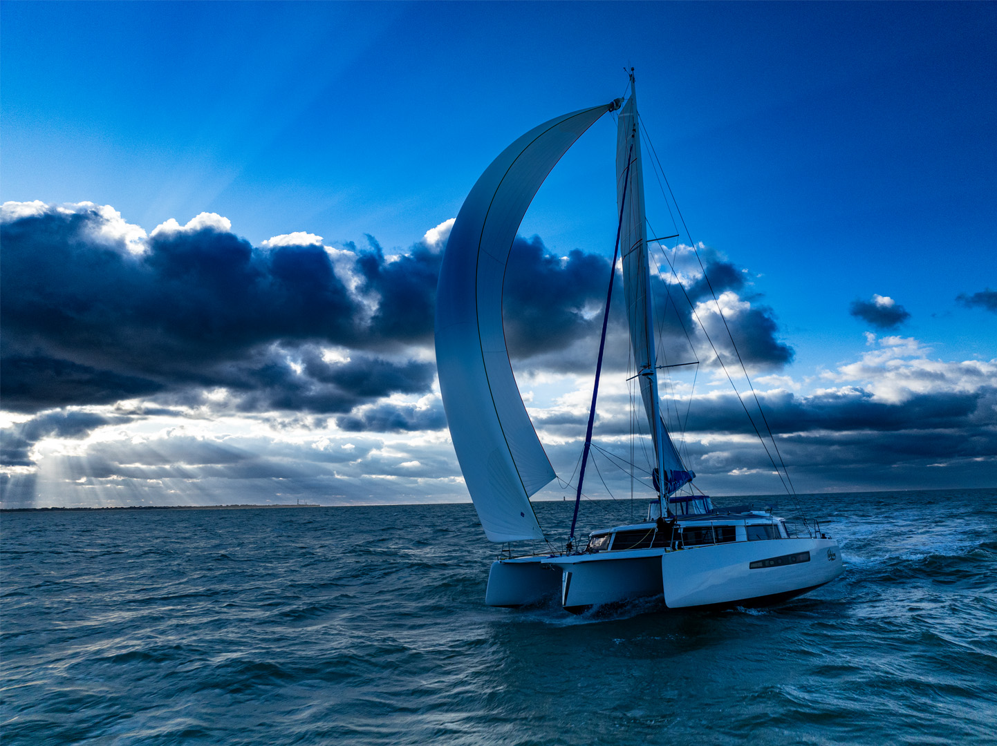 The living space on one level is highly ergonomic and entirely open plan, offering exceptional luminosity. The kitchen and the chart table face forwards. The panoramic view from this huge saloon is breathtaking. Both elegant and simple, the decoration lends the NEEL 52 a look of timeless distinction and gives the ample living space a calming atmosphere.