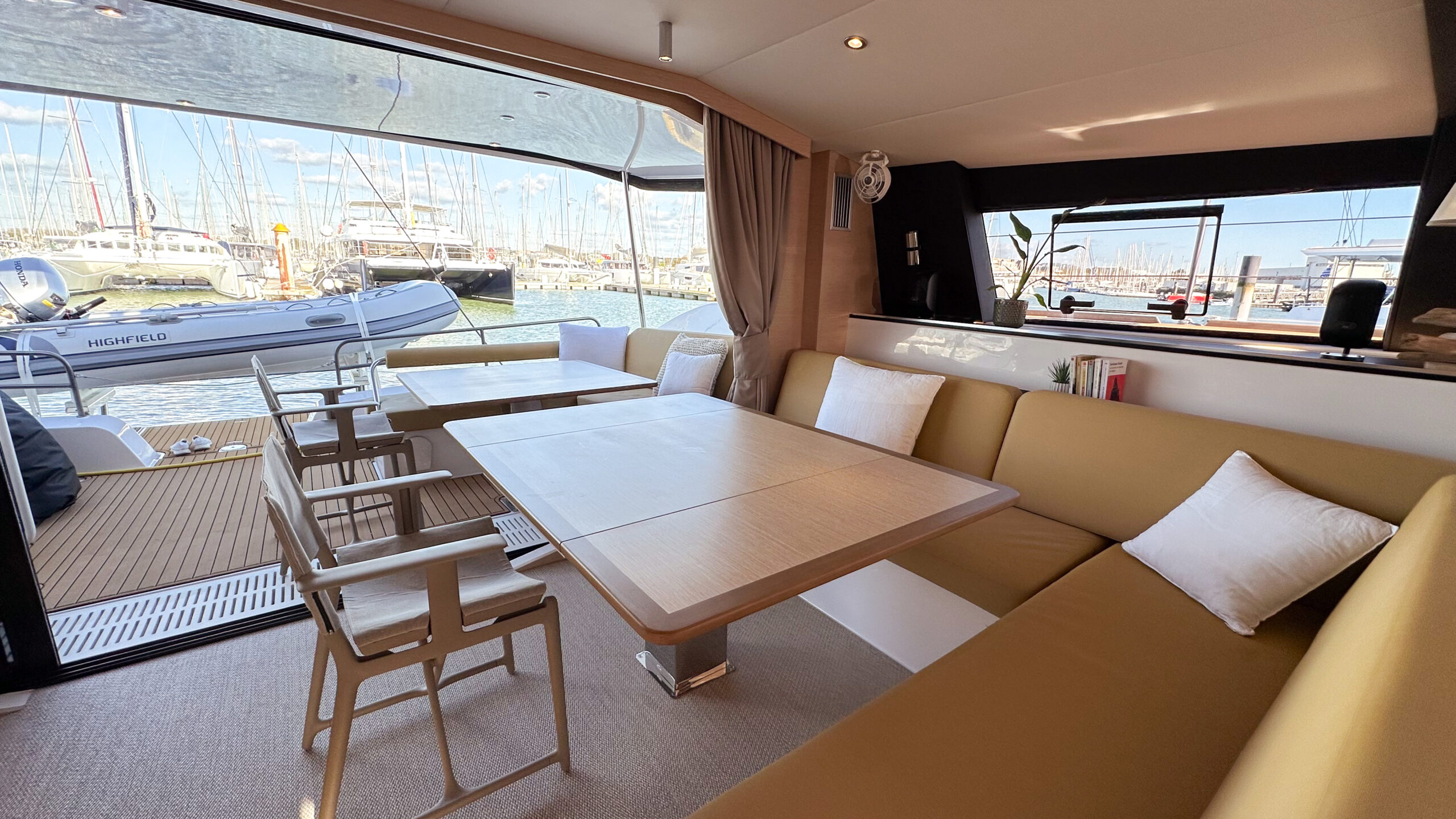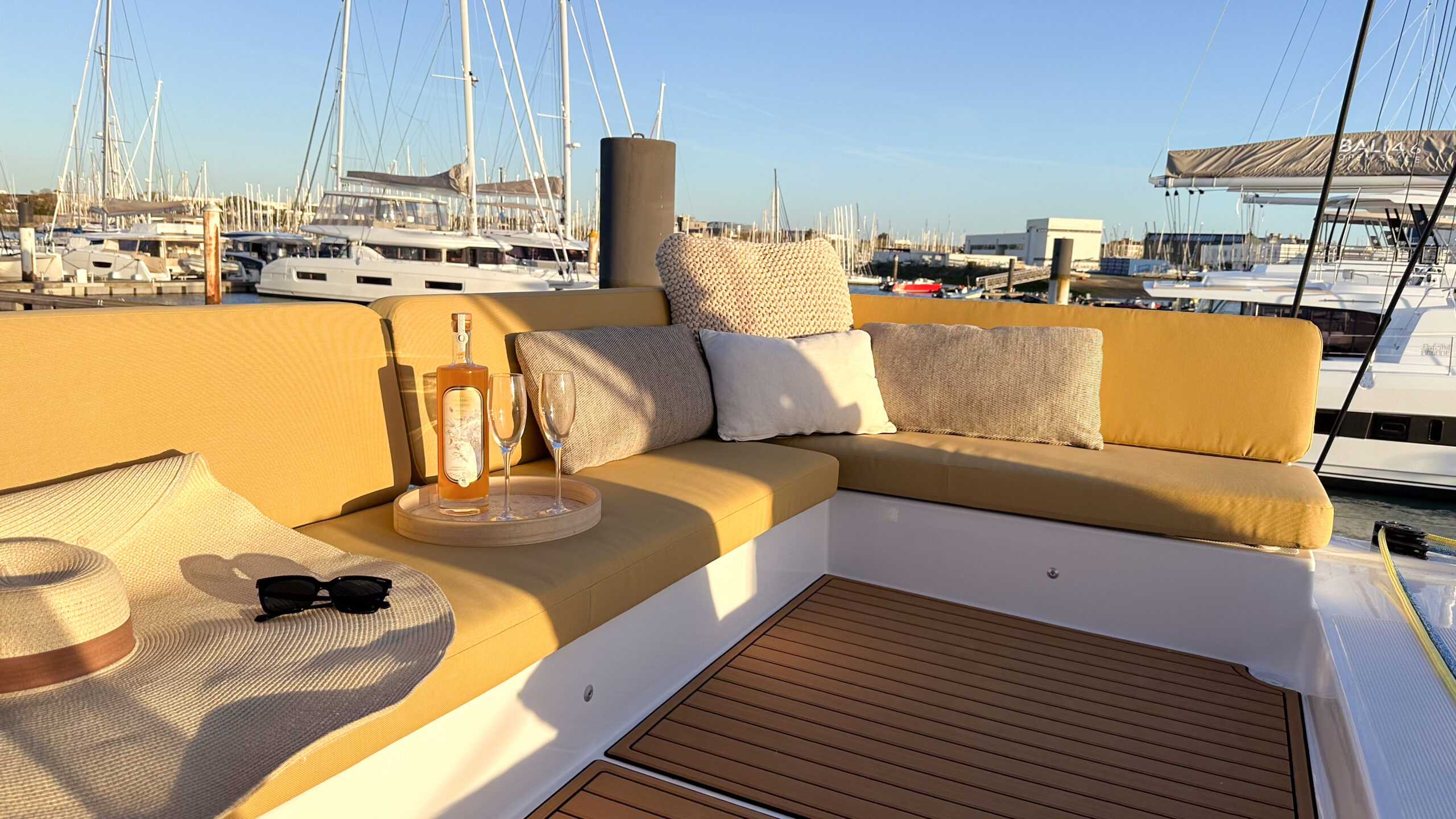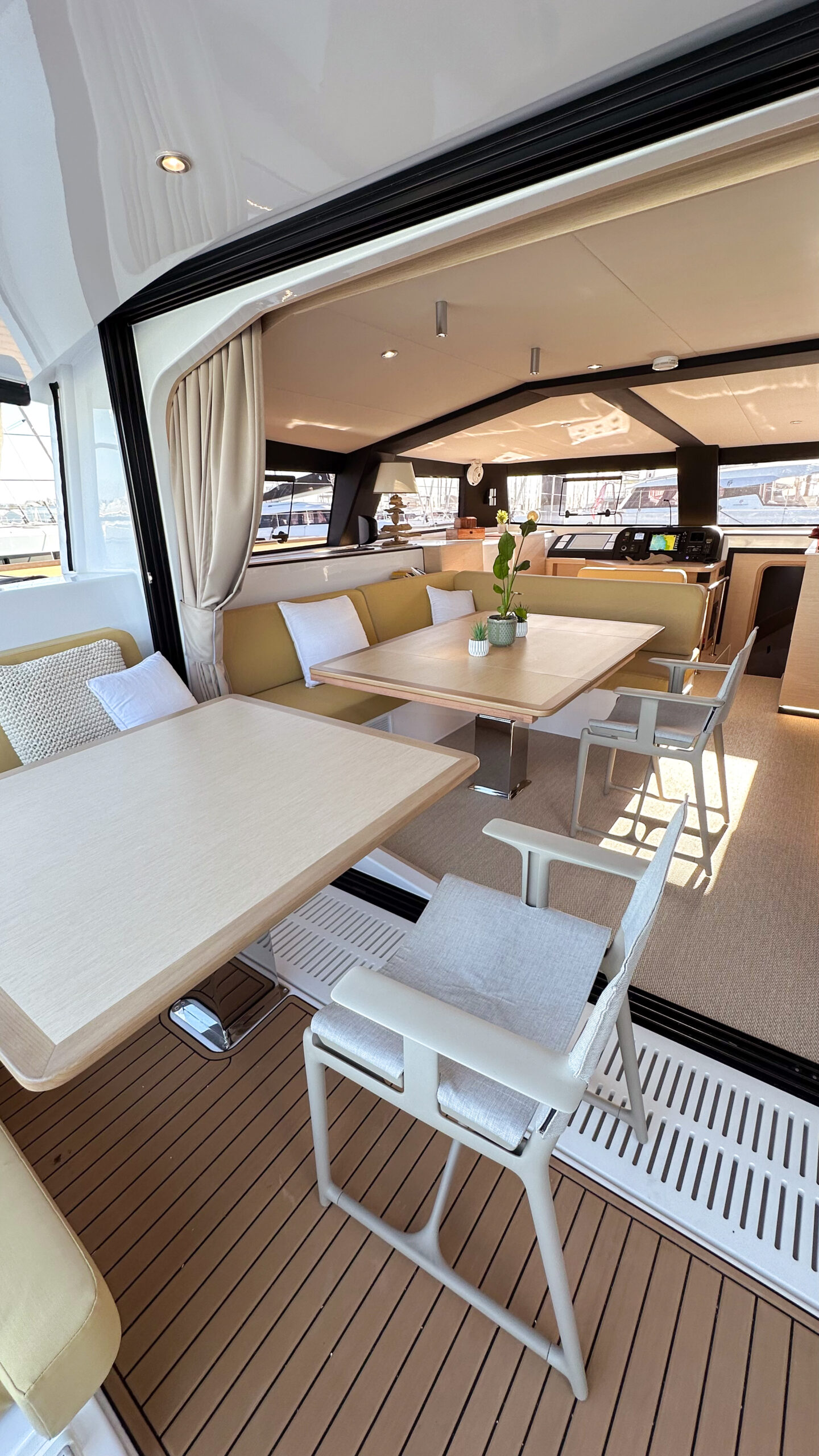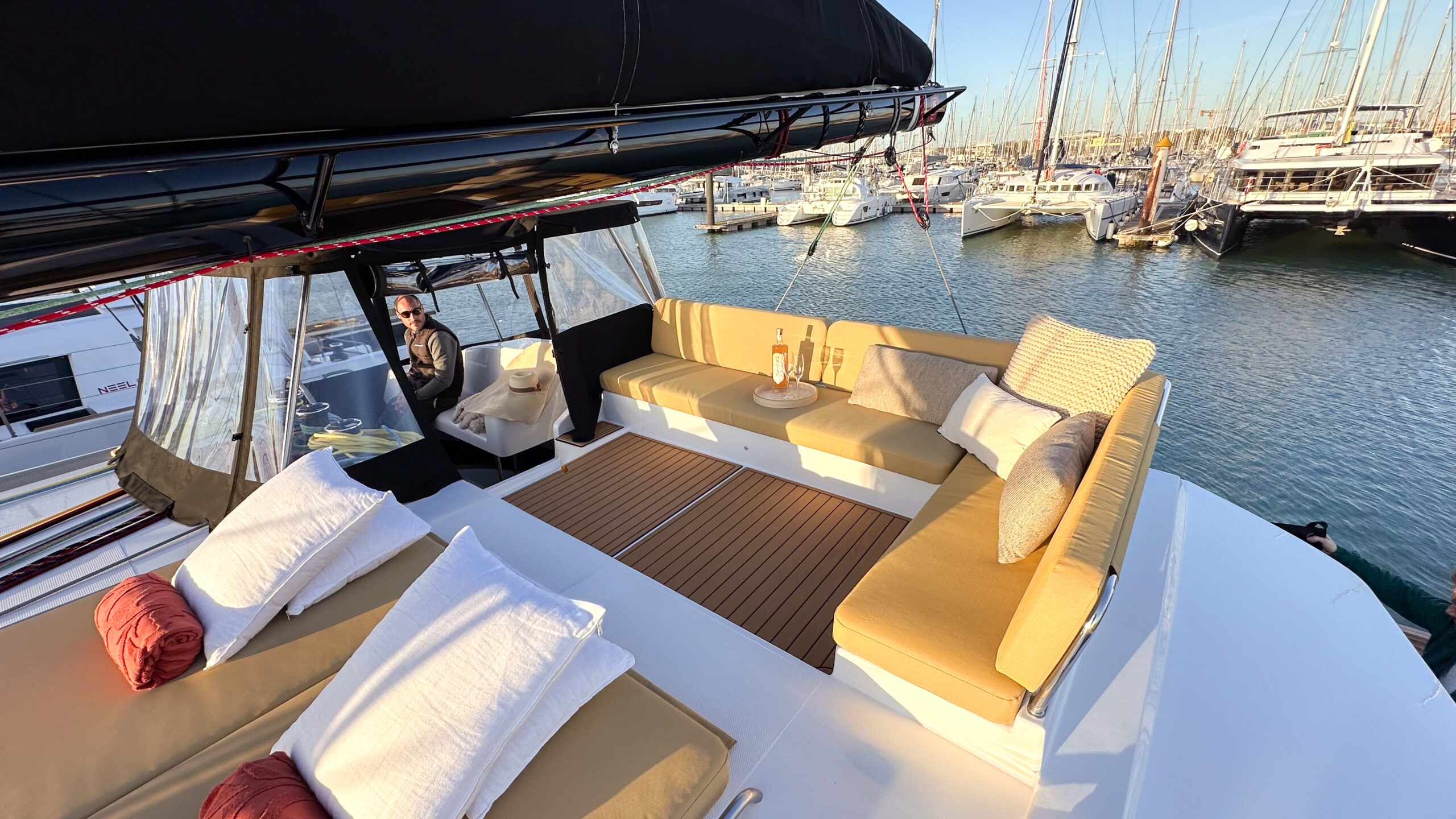 The NEEL 52 features the renowned Cockloon® , an impressive interior/exterior living space made possible by the wide opening between the cockpit and the saloon. It also incorporates the Full Beam Cockpit®, an extra-wide cockpit with multiple seating configurations that can be rearranged to take full advantage of the different vistas.